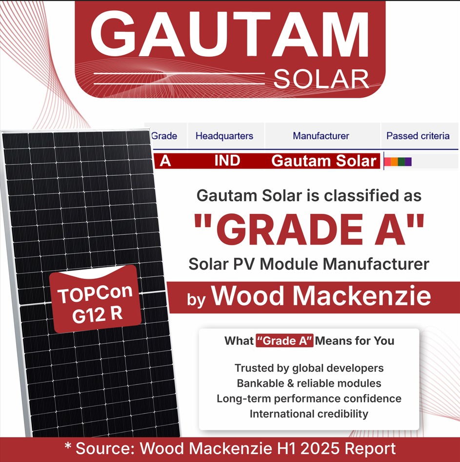 Gautam Solar’s R-Series N-Type TOPCon Modules offer increased power density, improved energy yield per unit area, and superior space utilization with efficiency upto 23.69%.
